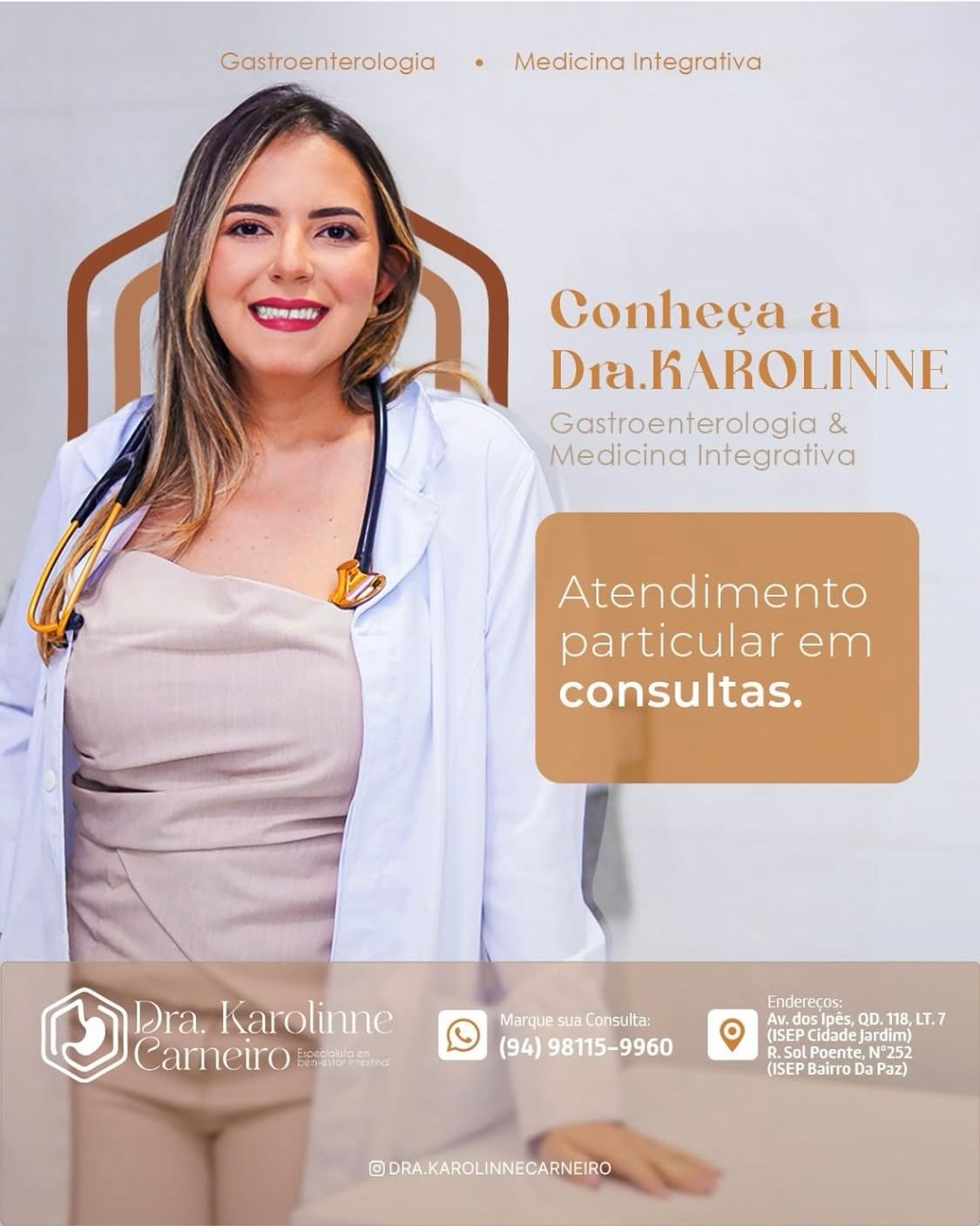 Médica graduada pela Faculdade de Medicina de Petrópolis, com pós-graduação em Gastroenterologia pelo IPMED – Salvador. Atua há 6 anos na prática clínica, com experiência consolidada no atendimento ambulatorial, urgências e acompanhamento longitudinal de pacientes. Desenvolve trabalho médico nas cidades de Imperatriz – MA e Parauapebas – PA, oferecendo assistência baseada em evidências, com foco em diagnóstico preciso, manejo integral das doenças gastrointestinais e promoção da saúde. Possui perfil ético, comunicativo e comprometido com a qualidade do cuidado, atualização científica contínua e condução segura do paciente em diferentes contextos clínicos.